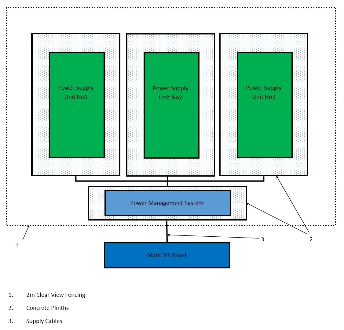 - As the PSU is of a modular construction it enables the addition of more PSUs as the growth of the Client’s electricity consumption increases. This is a seamless operation.